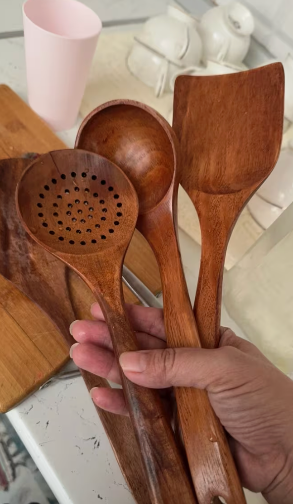 Wusstest du, dass herkömmliche Küchenhelfer bei Hitze oft Mikroplastik und Chemikalien abgeben? Mit PureKüche™ bringst du 100% Natur zurück an den Herd. Unser handgefertigtes Set aus nachhaltigem Teakholz ist die sicherste und schönste Wahl für dich und deine Familie.