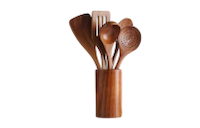 Unser skandinavisch designtes Küchengeschirr wird aus natürlichem Teakholz gefertigt und mit Olivenöl behandelt, um eine besonders lange Haltbarkeit zu gewährleisten.